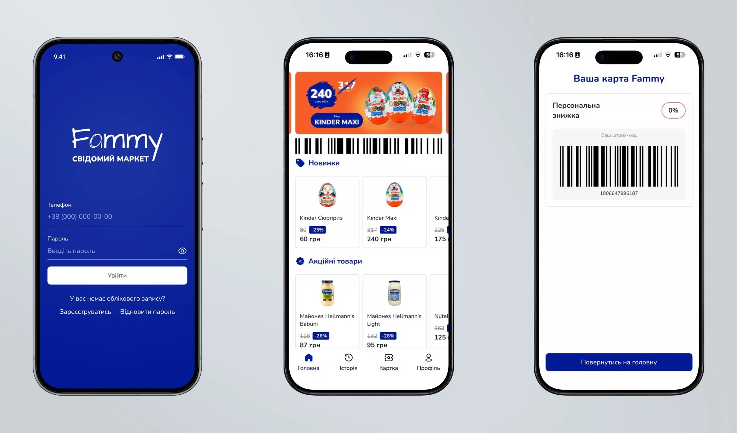 fammy.market is a compact digital solution for the store network, designed to support customer interaction and the loyalty program through a dedicated mobile app.