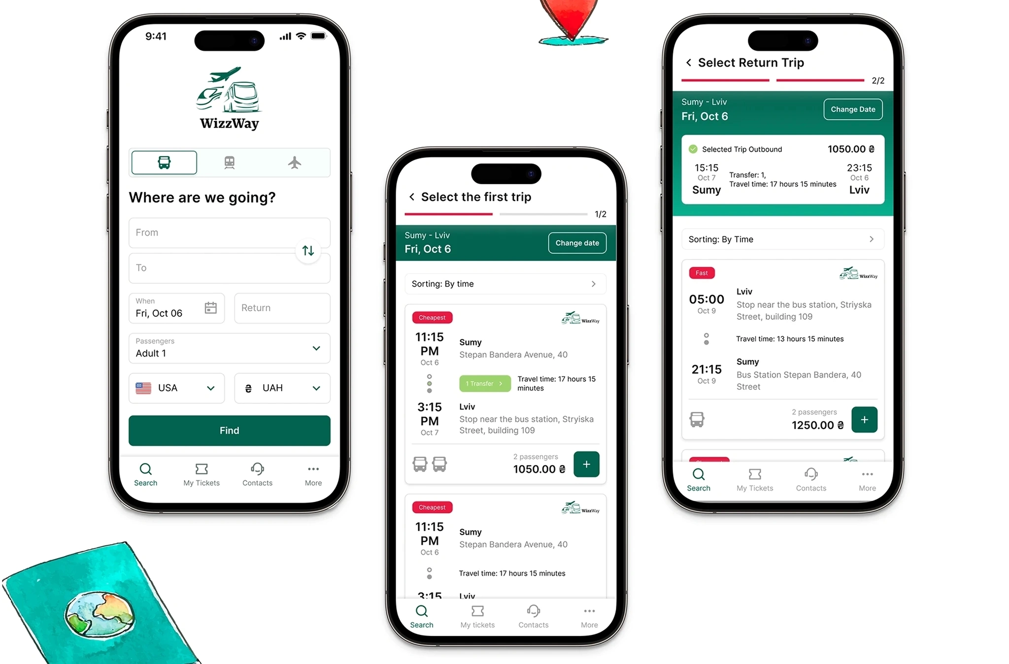 Our team has developed a mobile application for passenger transportation – the WizzWay ticket aggregator , a digital service for quick search and online booking of tickets for various types of transport. Currently, the application is used for bus transportation, and later railway and air tickets will be added, which will make the service a universal tool for planning trips in Ukraine and abroad.