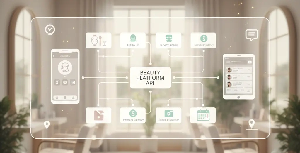 Кожен елітний салон має програмне забезпечення для ведення клієнтської бази, обробки замовлень, формування звітів, контролю ефективності співробітників, фінансового обліку. API інтеграція з застосунком забезпечує точну синхронізацію даних на всіх платформах. Клієнт користується мобільним додатком як персональним сервісом, а салон керує всіма процесами через внутрішні програми – всі складові працюють як один організм. Дані не втрачаються, обмін інформацією миттєвий та не потребує ручних операцій. Варіанти інтеграції: